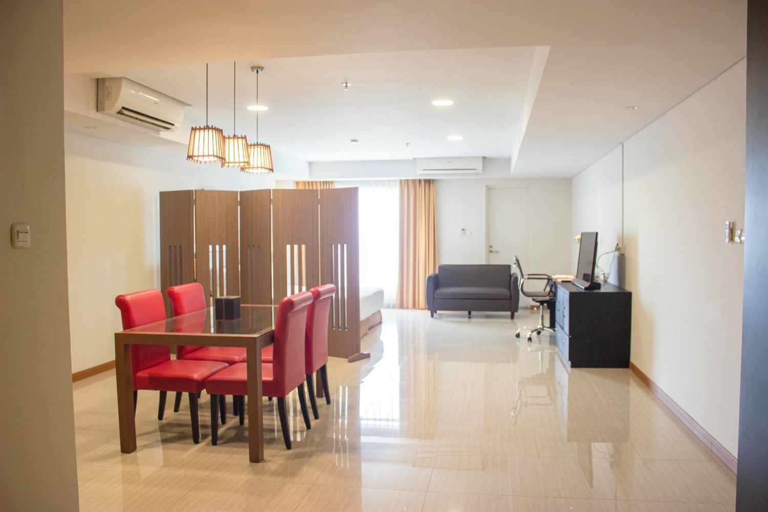 Sakura Park Residence offers modern room style with a touch of Japanese minimalist interior design. The apartment houses are fully furnished, equipped with a bunch of facilities, plus you can also request additional service and facilities.